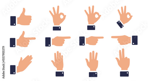 Collection of Hand Gestures Thumbs Up, Okay Sign, Pointing, and Number Icons