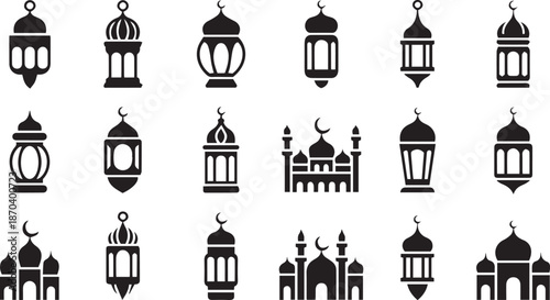 Collection of Islamic Lanterns and Mosques Silhouettes