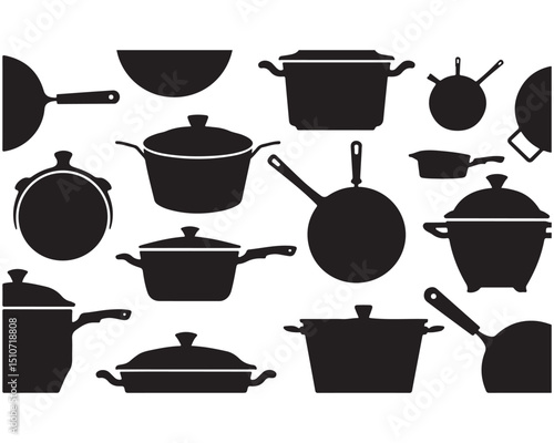 Collection of Kitchenware Silhouettes, Pots, Pans, Utensils, and More