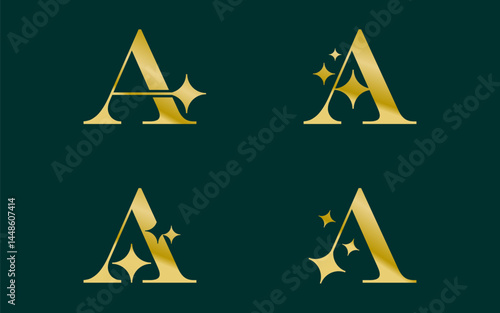 letter, a, star, spark, luxury, logotype, design, collection, initial, alphabet, typography, monogram, elegant, gold, shiny, glittering, celestial, cosmic, sparkle, bright, glow, premium, expensive, wealth, rich, royals, majestic, stylised, abstract, geometric, modern, creative, branding, identity, symbol, icon, signs, emblem, decorative, ornamental, artistic, flourish, calligraphy, script, typeface, gold, gradient, radiant