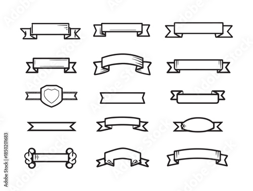 Collection of minimalist black and white ribbon and banner style vector illustrations for design projects