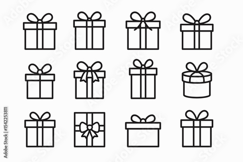 gift, icon, minimalist, box, bow, collection, shape, present, line, art, design, illustration, graphic, outline, simple, package, decoration, celebration, set, festive, wrapping, ribbon, neat, assortment, holiday, clean, elegant, style, monochrome, pattern, vector, icon