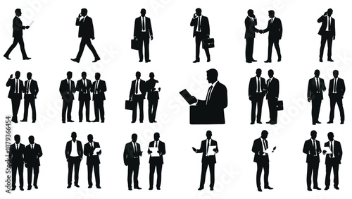 Collection of Silhouettes of Businessmen in Various Poses and Interactions.