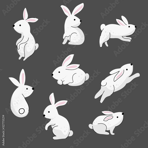 rabbit, hare, set, collection, character, isolated, funny, symbol, farm, domestic, rabbit, cute, pose, friendly, childish, children, hand-drawn, doodle, sitting, running, icon, mammal, cartoon, animal, wildlife, pet, wild, design, easter, vector