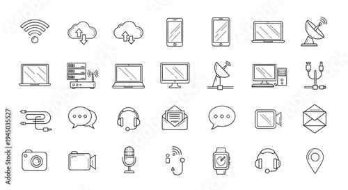 Collection of technology and communication icons.