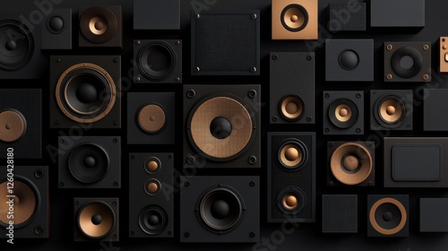 speaker, audio equipment, audio system, music, technology, acoustic, design, listening, studio, vintage, modern, art, craftsmanship, electronic, bass, treble, frequency, performance, wall, arrangement, decorative, media, entertainment, hobby, fidelity, clarity, resonance, wave, surround, wire, functionality, device, portable, loudspeaker, high fidelity, connectivity, innovation, aesthetic