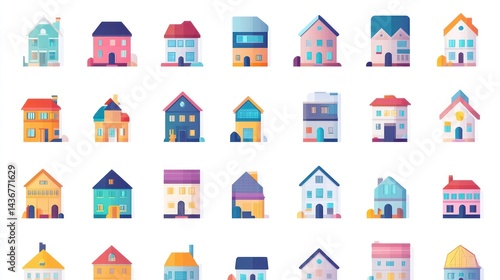 house, building, real, estate, home, cartoon, architecture, residential, property, facades, construction, city, urban, apartment, exterior, residence, dwelling, shelter, district, development, neighbourhood, suburban, town, village, community, icon, graphic, illustration, design, element, style, collection, structure, symbol, modern, roof, window, door, colourful, bright, pastel, geometric, simple, isolated, vector, flat, background