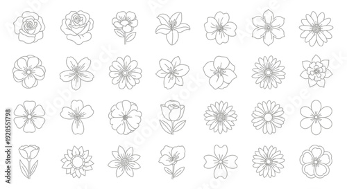 Collection of various hand-drawn flower and floral outline designs in different shapes and styles.