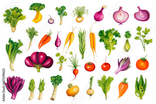 Collection of vegetables on white background. Food products representing the food pyramid. Healthy lifestyle, wholefoods and a balanced diet.