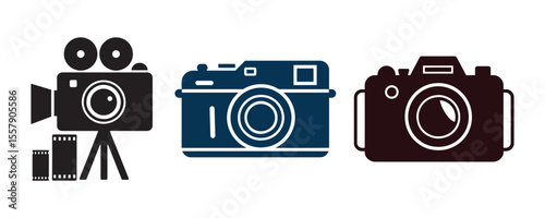 camera, vintage, film, icon, photo, video, motion picture, cinematography, retro, equipment, capture, lens, reel, tripod, graphic, design, symbol, illustration, old, classic, collection, set, white, background, isolated, media, visual, art, technology, hobby, snapshot