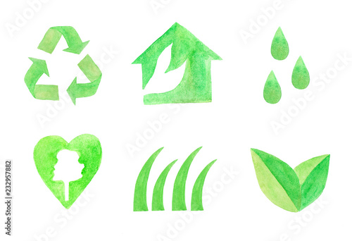 eco, watercolor, set, collection, natural, organic, bio, symbol, icon, signs, nature, house, health, green, product, healthy, vegan, vegetarian, naturally, hand-drawn, hand-painted, painting, element, template, object, illustration, clip art, design, decorative, graphic, picture, print