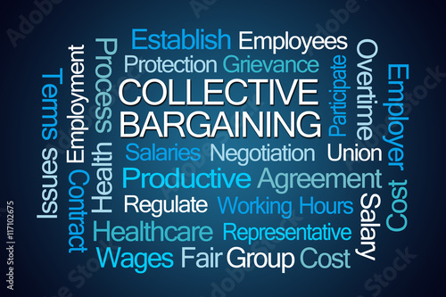 negotiation, process, employee, employer, group, agreements, regulate, representative, union, wages, work, hours, health, safety, overtime, grievance, participate, contract, term, rule, cost, establish, fair, issue, law, protection, productive, limit, employment, blue, word, cloud, white, background