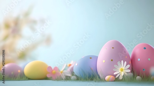 easter, egg, pastel, spring, holiday, abstract, three-dimensional, minimal, nature, outdoors, grass, flower, daisy, pink, purple, blue, yellow, design, art, background, seasonal, festive, texture, pattern, colourful, vibrant, soft, delicate, organic, minimalist