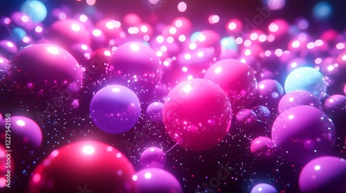 Colorful Abstract Background with Light and 3D Spheres in Motion