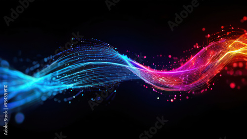 colorful abstract background with shiny neon purple and blue glitter and waves, technology and cyberspace background