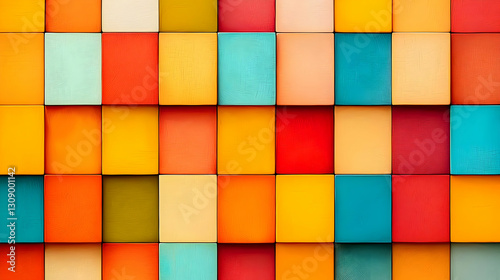 Colorful Abstract Geometric Pattern Of Squares Blocks In Vibrant Hues With Textured Surface