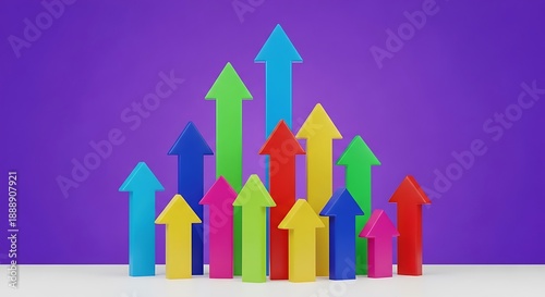 arrow, colourful, upward, growth, progress, purple, background, three-dimensional, random, pattern, white, surface, vibrant, direction, success