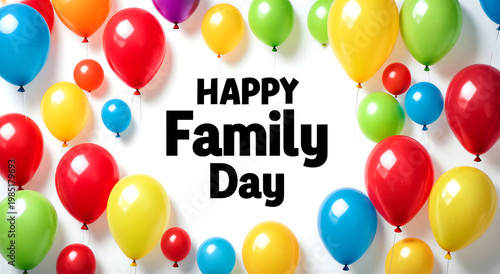 Colorful balloons with happy family day greeting perfect for celebrations and family gatherings events