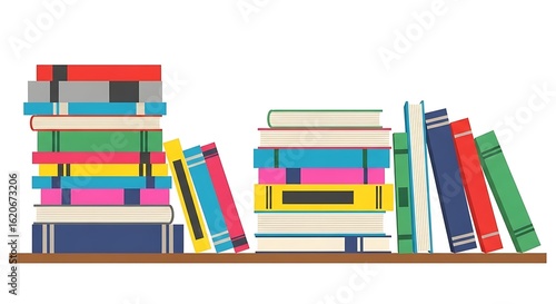 book, book, stack, shelf, library, reading, education, cognition, literature, colourful, spine, cover, paper, page, learning, school, study, text, illustration, graphic, vector, art, design, brown, red, blue, green, yellow, pink, grey, white
