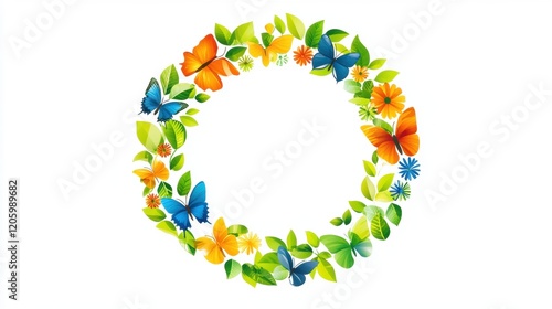butterfly, flower, leaf, frame, nature, garden, colourful, spring, summer, decoration, illustration, beauty, freshness, design, vibrant, fauna, flora, graphic, artistic, creativity, environment, joy, exotic, pollinator, blooming, blossom, artwork, round, natural, seasonal, wildlife, delicate, bright, cheerful