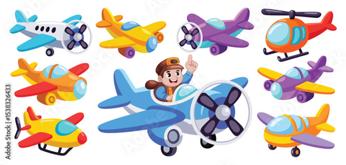 Colorful Cartoon Airplanes and Helicopter Set for Kids