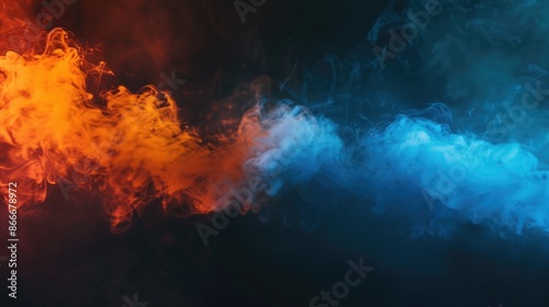 Colorful cigarette smoke movement on dark background with banner.