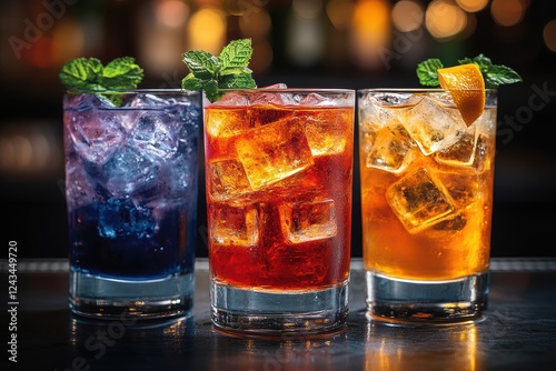 Colorful cocktails in elegant glasses for a vibrant evening gathering
