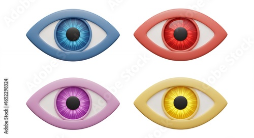 eye, icon, symbol, colours, design, graphic, illustration, isolated, visual, image, blue, red, purple, yellow, pink, modern, digital, flat, texture, graphic design, symbolism, object, pattern, abstract, background, element, design element, colourful, 4, grid, set