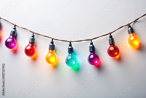 Colorful Festive String Lights on a Minimalist White Background for Holiday Decor