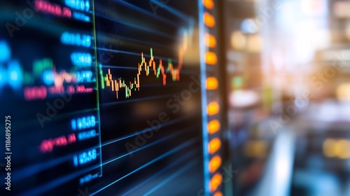 Colorful Financial Stock Market Chart with Glowing Data Points in Focus : Generative AI