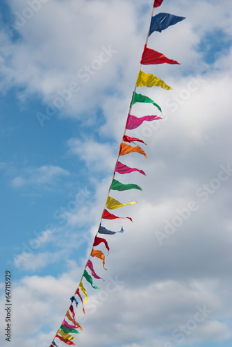 colorful flags against the blue sky