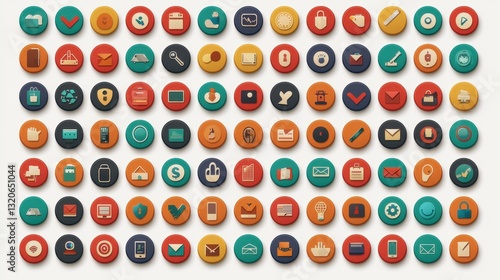 Colorful Flat Design Icons Set for Digital Communication, Technology, and Online Services
