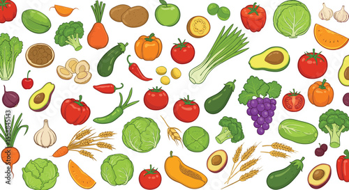Colorful Food Group Illustration – Fruits, Vegetables, Meats, Dairy & Grains