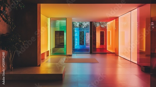 interior design, colours, contemporary, colourful, rainbow, architecture, geometric, glasses, hue, vibrant, modern, shape, wall, design, residential, art, ambience, bright, interior, home decor, room, aesthetic, light, building, illumination, abstract, wellness, pattern, structure, atmosphere, minimalist, tranquil, studio, space, line, meditation, style, peaceful, commercial, reflective, green, calm, potted, clean, relaxation, smooth, serene, glossy, plant