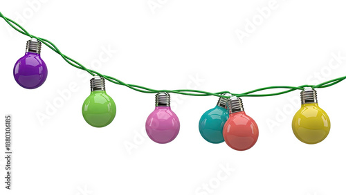Colorful globe string lights on a green wire