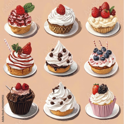 cake, cupcake, dessert, sweet, vector, food, chocolate, cream, muffin, birthday, bakery, pattern, illustration, set, candy, cherry, strawberry, seamless, cartoon, cute, delicious, decoration, party, fruit, cookie
