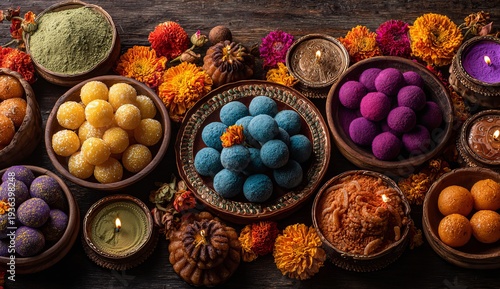 Colorful Indian Sweets and Diyas for Diwali Celebration