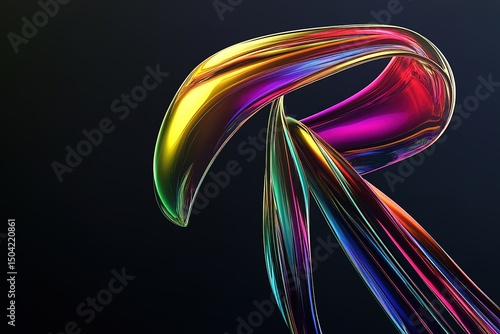 Colorful iridescent ribbon abstract creates striking three dimensional art on dark background