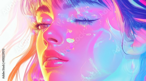 woman, face, portrait, girl, female, beauty, colourful, vibrant, iridescent, glowing, shiny, bright, light, colours, skin, abstract, art, digital, illustration, graphic, design, fantasy, surreal, style, modern, trend, fashion, make-up, hair, eye, lip, expression, mood, emotion, texture, smooth, glossy, closeup, detail, young, pretty, elegant, dreamy, artistic, creative, visual