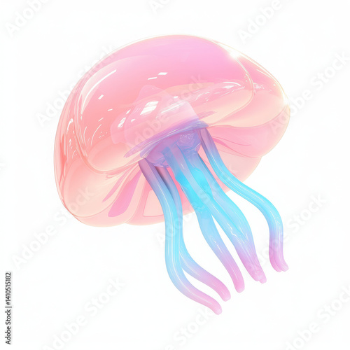 Colorful jellyfish with translucent body, floating gracefully in water.