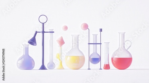 Colorful Laboratory Glassware and Scientific Equipment on White Background