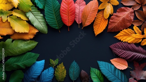 leaf, autumn, colourful, fall, nature, vibrant, colours, frame, dark, background, seasonal, october, november, design, art, photo, image, graphic, foliage, decorative, pattern, border, circle, composition, symmetry, display, autumn, thanksgiving