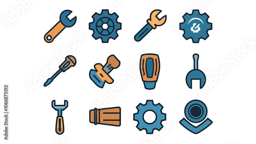 Colorful Mechanical Tool Icons Including Wrench and Gear Illustrations