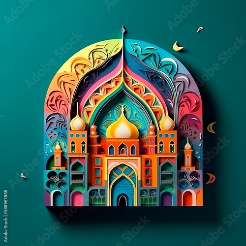 Colorful mosque artwork created with Generative AI
