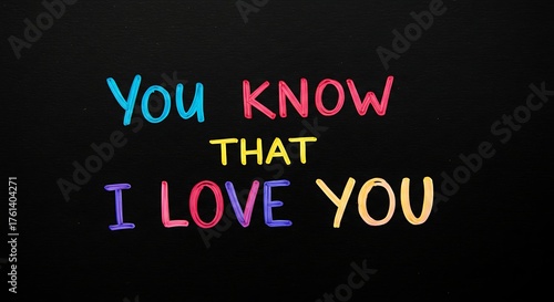 Colorful Neon Text on Black Background Spelling Out You Know That I Love You.