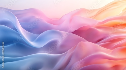 Colorful pastel fabric waves, fluid lines, detailed textures, hyper-realistic digital art, wide-angle lens view,