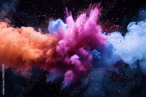 Colorful powder explosion effect on black background