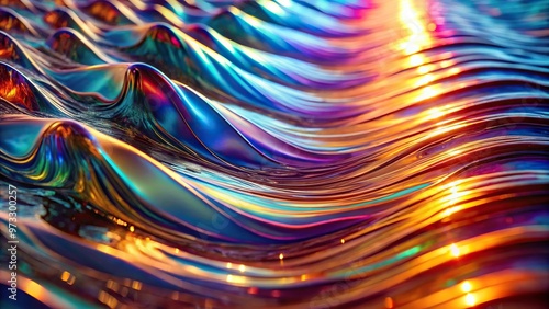 Colorful shiny reflective surface with wave pattern on Worm's Eye View angle