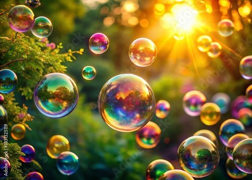 Colorful Soap Bubbles Floating in Air from Bubble Machine - Captivating and Dreamy Scene for Stock Photography