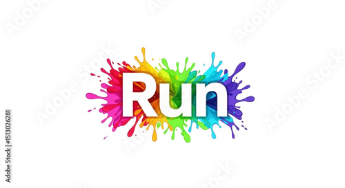 Colorful splashes of paint forming the word run in vibrant rainbow tones